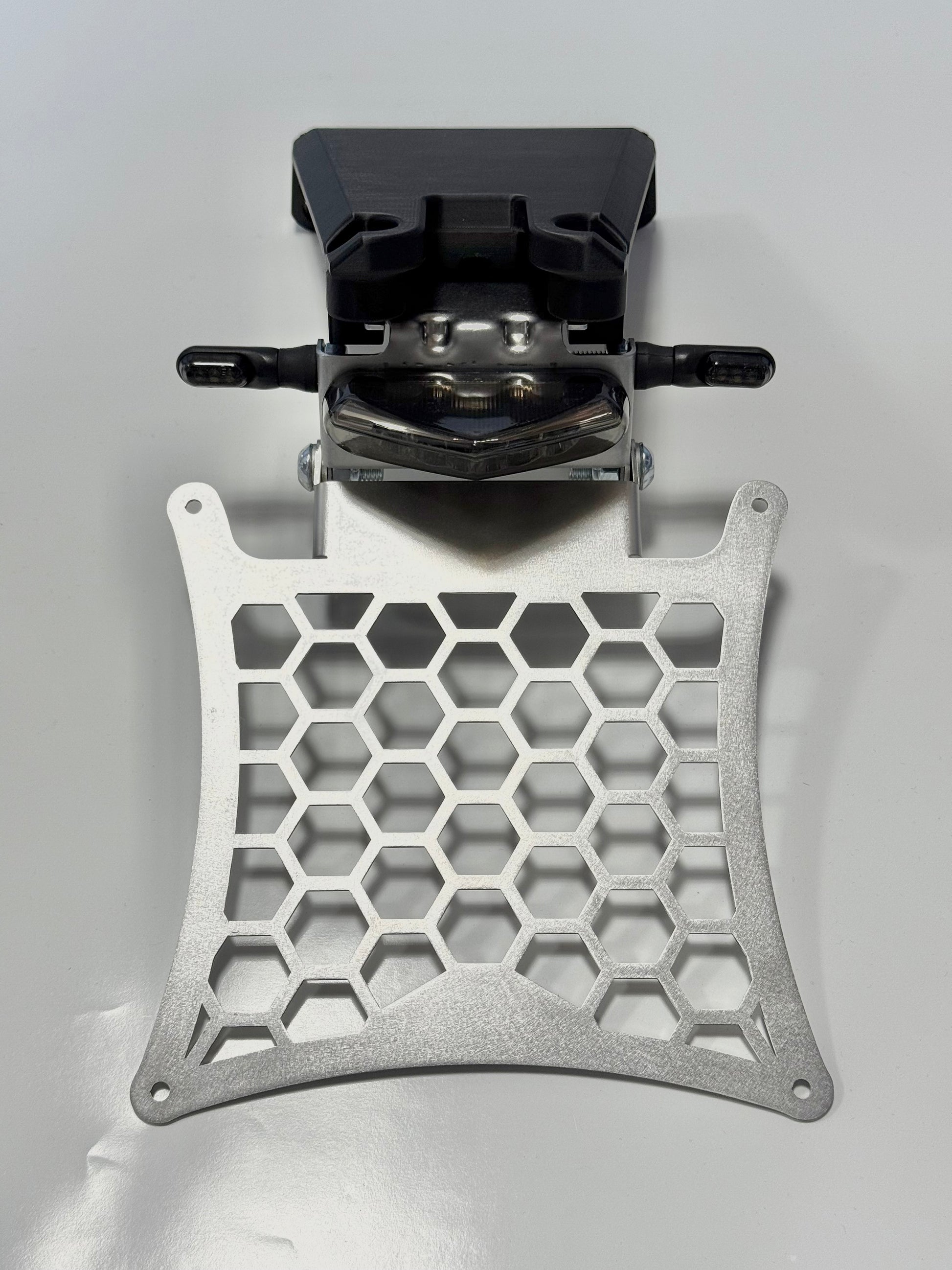 Il portatarga, nella sua versione senza accessori viene fornito privo di faretto posteriore, frecce direzionali e cablaggi, al fine di offrire al cliente la massima libertà nella scelta e nell'installazione dei componenti che meglio rispecchiano il proprio stile e le proprie preferenze.