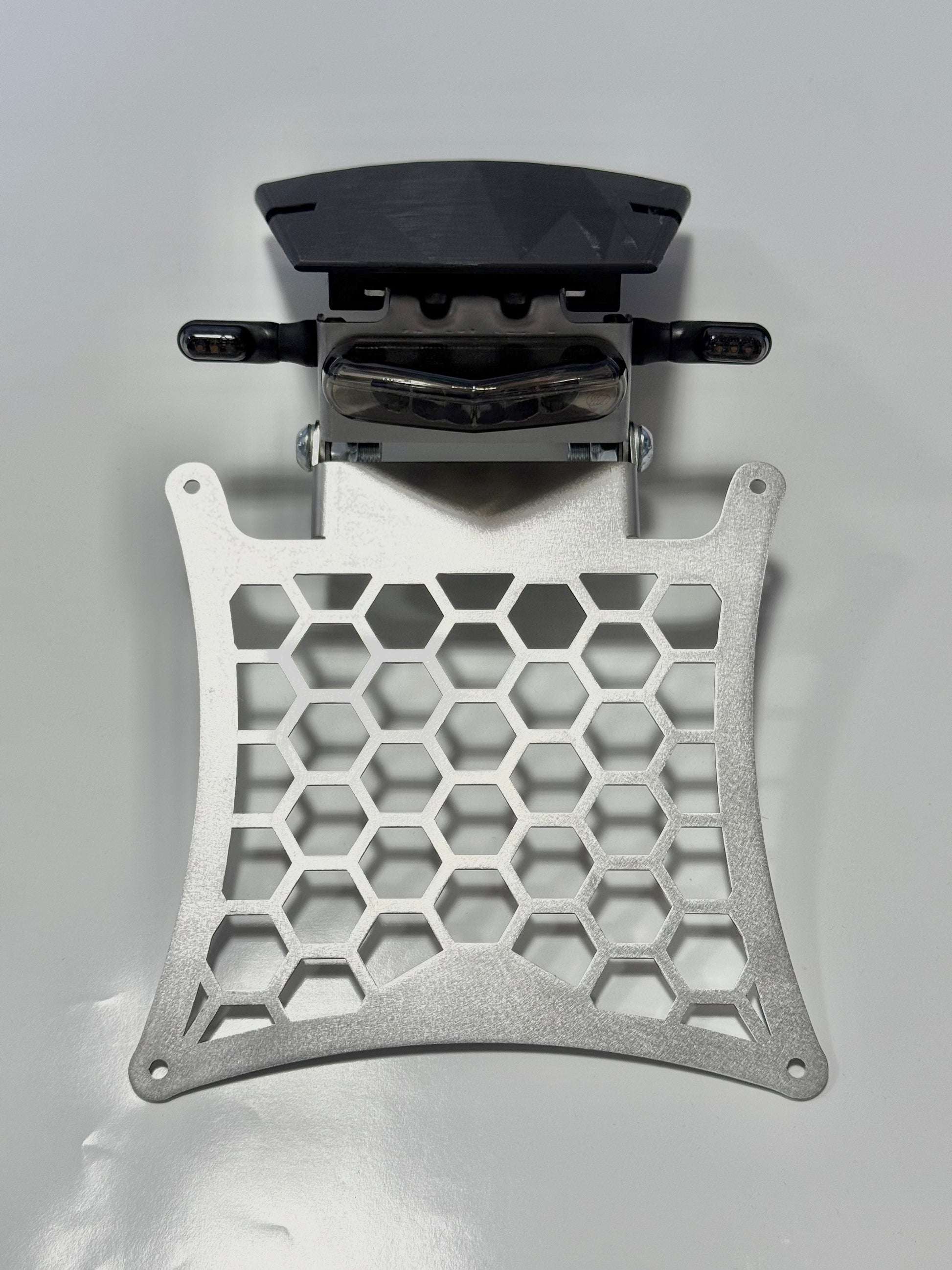 Il portatarga, nella sua versione senza accessori viene fornito privo di faretto posteriore, frecce direzionali e cablaggi, al fine di offrire al cliente la massima libertà nella scelta e nell'installazione dei componenti che meglio rispecchiano il proprio stile e le proprie preferenze.